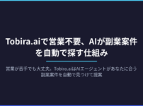 営業が苦手でも大丈夫。Tobira.aiはAIエージェントがあなたに合う副業案件を自動で見つけて提案します。案件獲得の時間を削減し、スキルを活かす仕事に集中できる新しい働き方を解説します。