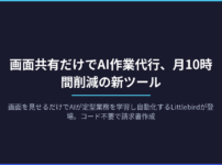 画面を見せるだけでAIが定型業務を学習し自動化するLittlebirdが登場。コード不要で請求書作成やデータ入力を代行。導入3日で月10時間削減の実例も。無料プランから試せる始め方を解説します。
