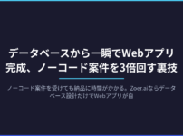 ノーコード案件を受けても納品に時間がかかる。Zoer.aiならデータベース設計だけでWebアプリが自動生成され、同じ時間で案件を3倍こなせる。副業の時給を上げたい人に向けた具体的な活用法を紹介します。