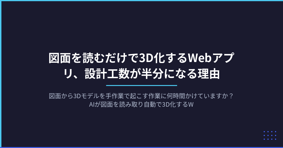 図面を読み込むだけで3Dモデルが自動生成されるWebアプリが、設計業務の常識を変えつつあります。