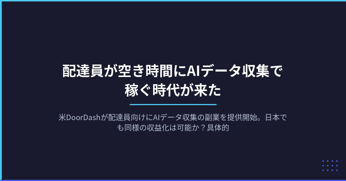 米DoorDashが配達員向けにAIデータ収集の副業を提供開始。日本でも同様の収益化は可能か?具体的な仕組みと、今すぐ始められる国内のデータ収集副業を解説します。