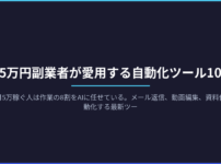 副業で月5万稼ぐ人は作業の8割をAIに任せている。メール返信、動画編集、資料作成を自動化する最新ツール10個を厳選。無料で始められるものから紹介。今日から使える具体的な活用法つき。 副業で月5万稼いでいる人の作業時間を調べたら、平均で週8時間だった。対して、収益ゼロの人は週20時間かけている。この差はスキルでも才能でもなく、AIツールを使っているかどうかだけだった。 2025年、稼げる副業者は「自分で作業する人」ではなく「AIに作業を任せる人」に変わった。ここで紹介する10個のツールは、すべて実際に収益を ...